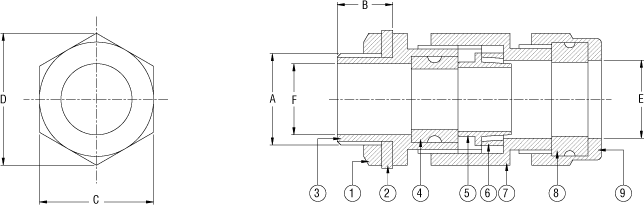 - Finally apply the full fitted Gland in the Enclosure with the entry thread provided, if the Enclosure does not have threaded entry than tight the Gland with the Part No. 1 provided.